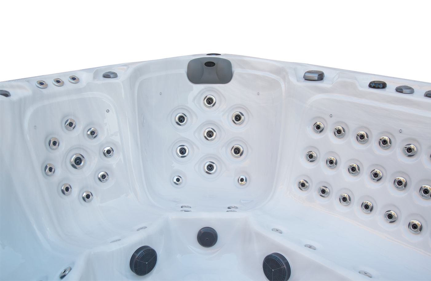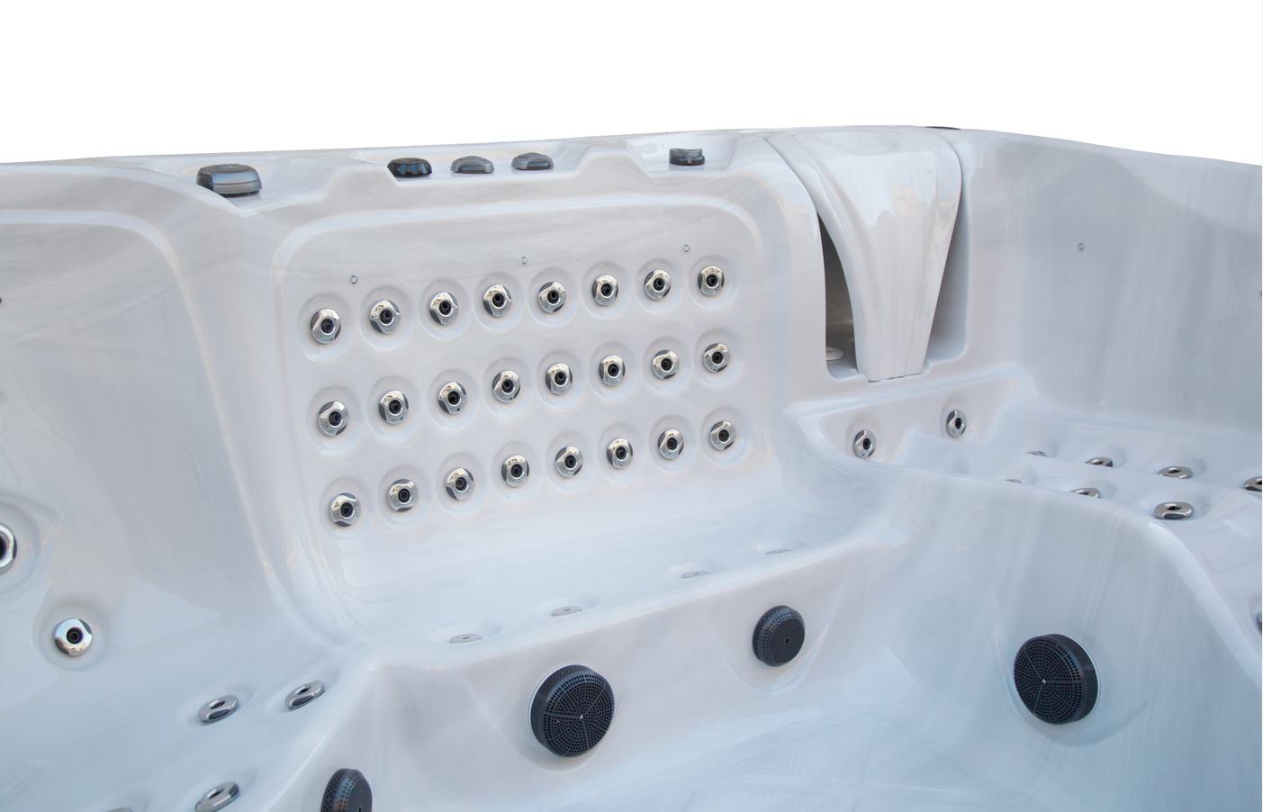 Masažni bazen BORNEC ZUNANJE MERE: 259X 224,5X 88CM VELIKOST: 8 ODRASLIH OSEB ŠTEVILO SEDIŠČ/LEŽIŠČ: 7/1 VOLUMEN: 1970 L SUHA TEŽA: 498 KG POLNA TEŽA: 2468 KG ŠTEVILO MASAŽNIH ŠOB: 123 ČRPALKA: 3x 3.0 HP ENOSTOPENJSKA CIRKULACIJSKA ČRPALKA: 0.35 HP GRELEC: 3KW DODATKI: OZONATOR WIFI LCD KONTROLNA ENOTA BLUETOOTH DVA ZVOČNIK AROMATERAPIJA AMBIENTNA RAZSVETLJAVA LED LUČKE SLAPOVI